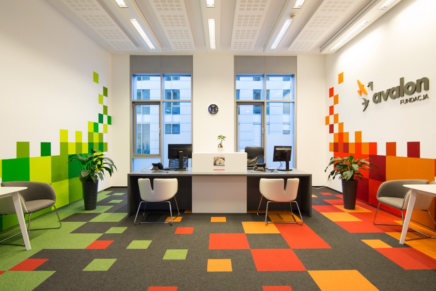Powierzchnia fundacji pomocy niepełnosprawnym AVALON, jest idealnie dostosowana do osób poruszających się na wózku inwalidzkim ale jest to również powierzchnia, która poza swoją funkcją inspiruje i nastraja pozytywnie. Intensywne kolory korespondują z działaniem i energią ludzi tam pracujących i oraz ich podopiecznych. Optymizm udziela się już od progu każdemu, kto przybywa do fundacji, nam również towarzyszył podczas całej realizacji projektu.