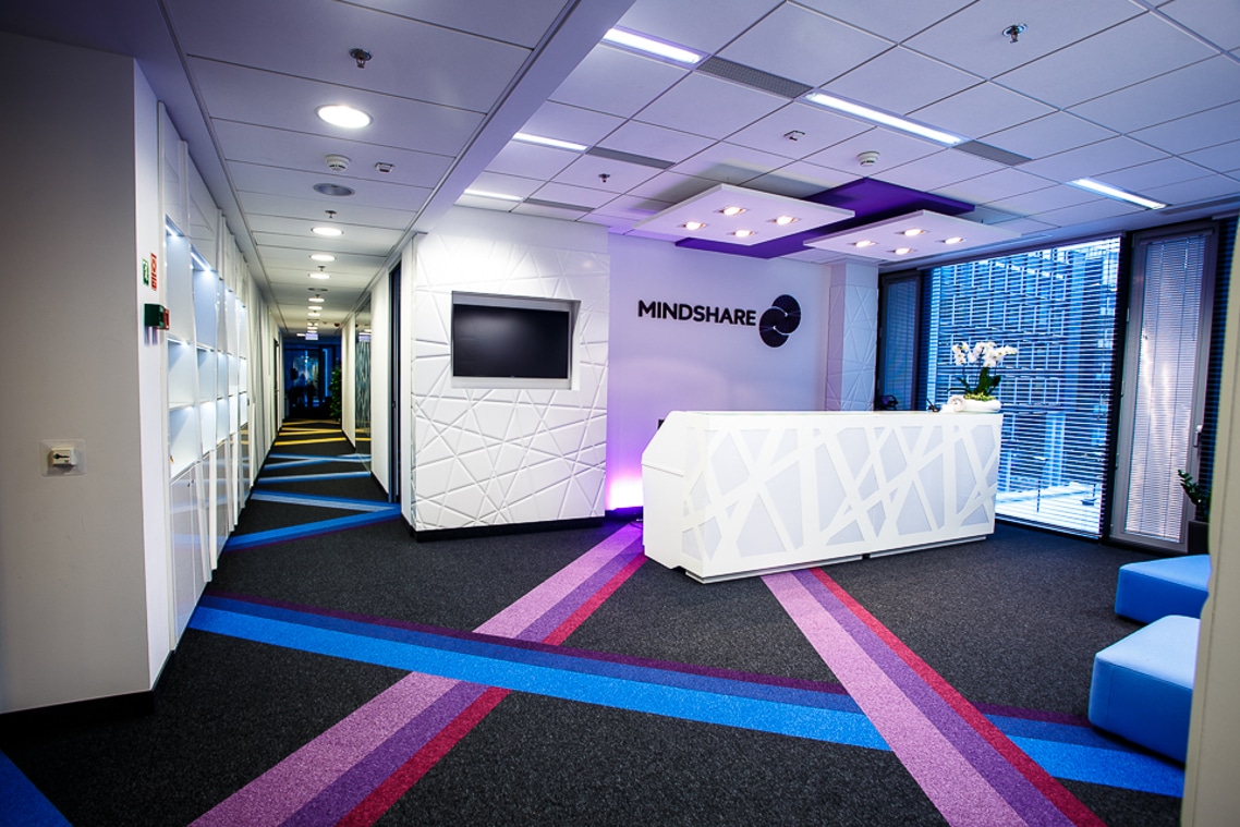 Projekt został zrealizowany w budynku Harmony Office Centre w Warszawie. Mindshare to firma zajmująca się realizacją kompleksowych strategii marketingowych dla firm oraz korporacji. Środowisko pracy należy dopasować do potrzeb użytkownika, nie na odwrót. Przestrzeń do tego typu zadań powinna przewidywać nie tylko osobne stanowiska pracy, ale także miejsca do spotkań, dyskusji czy też burzy mózgów. Zależało nam, żeby biuro zawierało wydzielone strefy o różnorodnej funkcji, gdyż odpowiednio dobrane rozwiązania podziału przestrzeni wpływają na komfort pracowników, co wpływa na poprawę jakości wykonywanej pracy.
