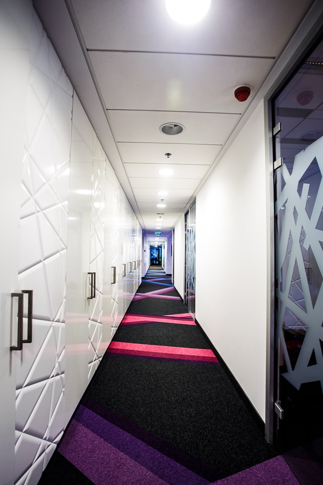 Inwestorowi zależało, aby wnętrze było funkcjonalne i inspirujące. Połączenie dynamicznych wzorów oraz form ze zdecydowanymi kolorami stworzyło niepowtarzalne wnętrze biurowe, w którym skupiliśmy się nie tylko na sferze wizualnej, ale także na indywidualnych potrzebach pracowników firmy. Największą satysfakcję czerpiemy z zadowolenia klienta, co zdecydowanie udało nam się osiągnąć.