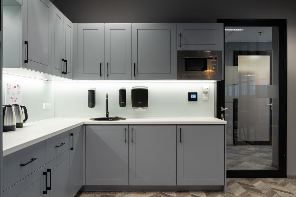 Wszystko razem daje poczucie większej powierzchni, większego światła, większej łączności z resztą zespołu. Przestrzeń i transparentność, pojęcia wzajemnie się uzupełniające, zwłaszcza w przestrzeni biznesowej.
