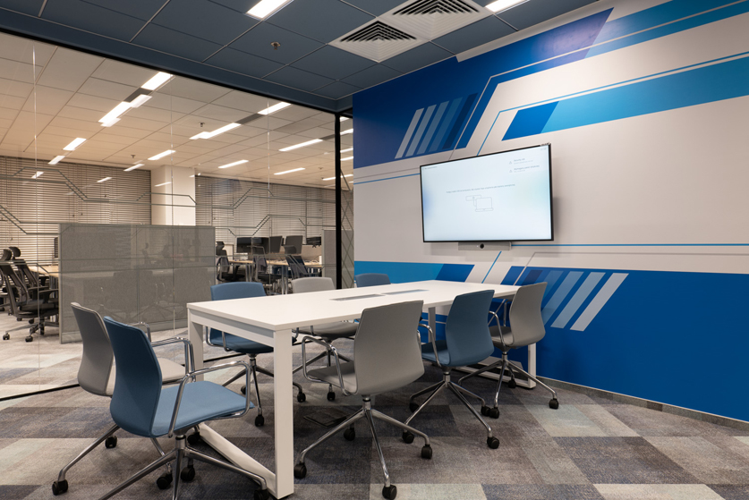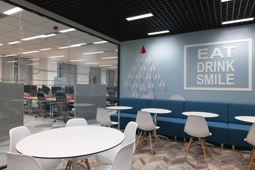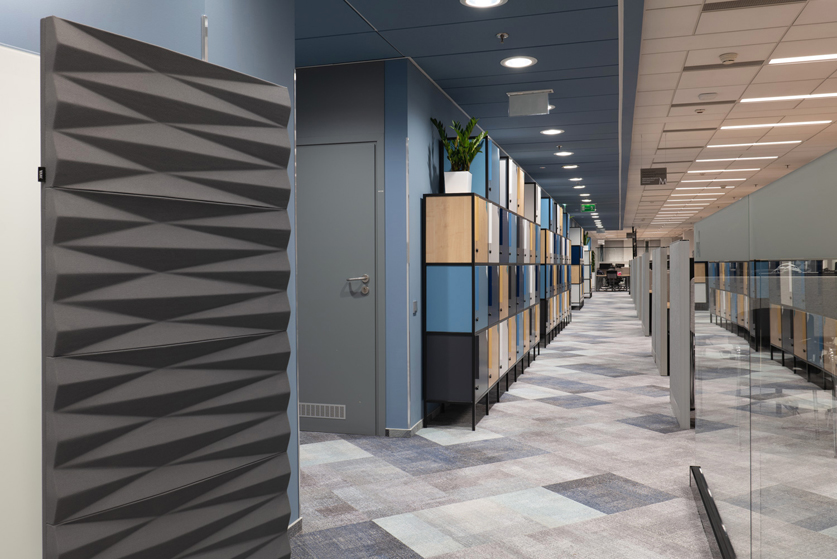 Office spaces in the bank’s headquarters tend to be similar, after all, it’s one organization, so when designing individual floors, we gave them a characteristic style and color, still maintained in a coherent idea of open and transparent space, where the view to each room is almost unobstructed. We call this floor “blue”.