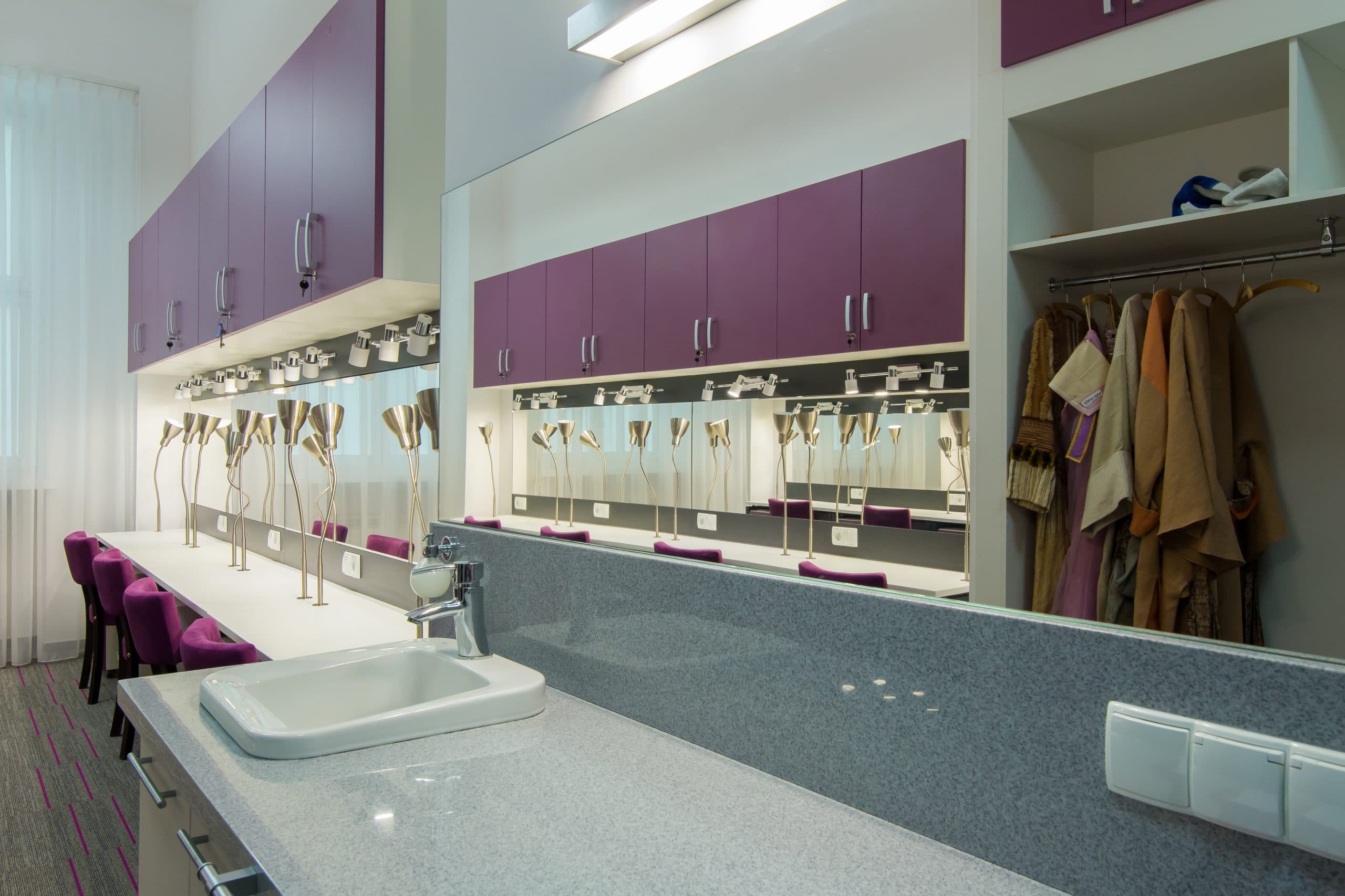 Project dressing rooms for the artists at the National Opera in Warsaw was a very interesting project. It was necessary to become familiar with the needs of each group of artists. Other requirements, and thus different functions, are fulfilled by choir wardrobes, other ballet wardrobe, and other wishes set by soloists’ wardrobes. Therefore, we tried to make each room adapted to the appropriate function. So that the wardrobe gives you the opportunity to practice on instruments, every interior is characterized by very good acoustics. It was important that the musicians did not disturb each other during rehearsals in nearby rooms. We also made sure that the design of the wardrobe refers to the nature of the opera. The designed rooms are characterized by a combination of classic accents with a modern, functional finish.