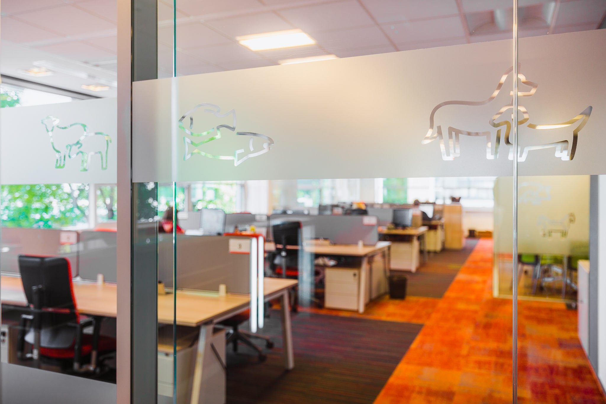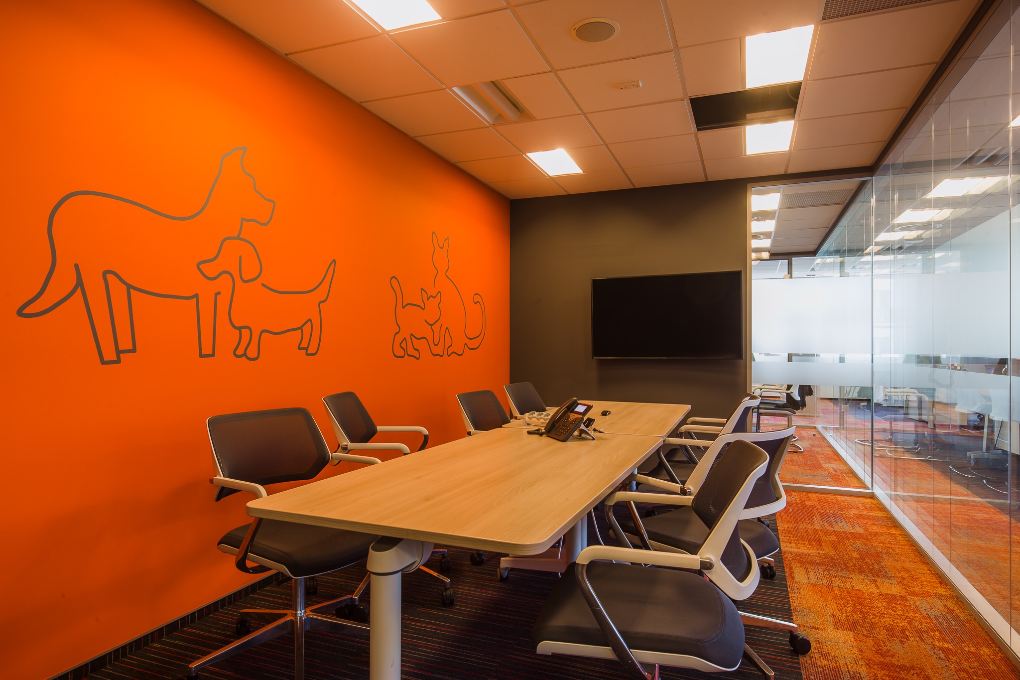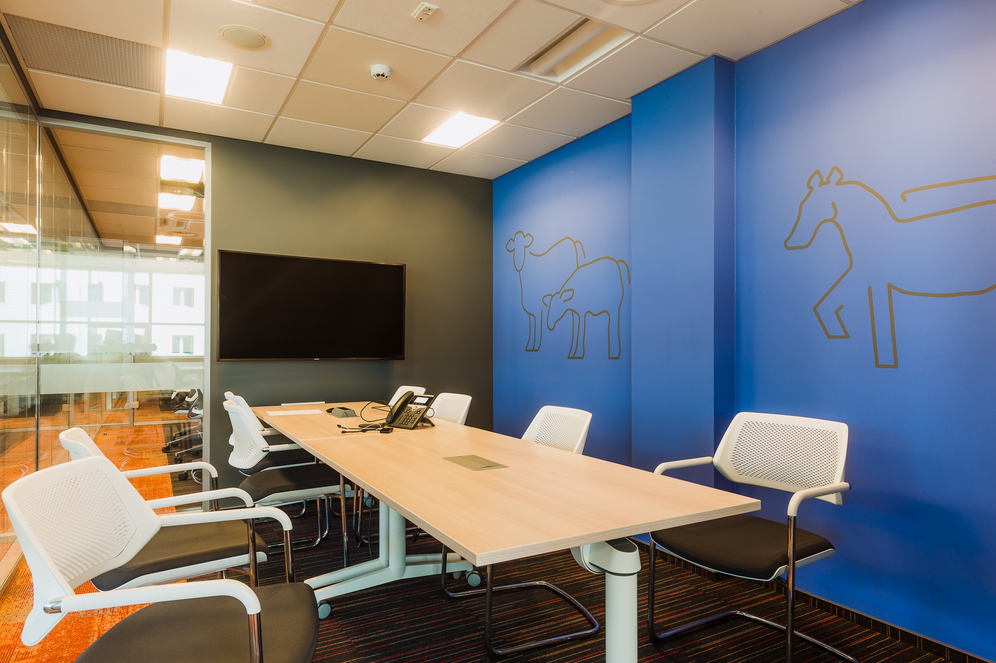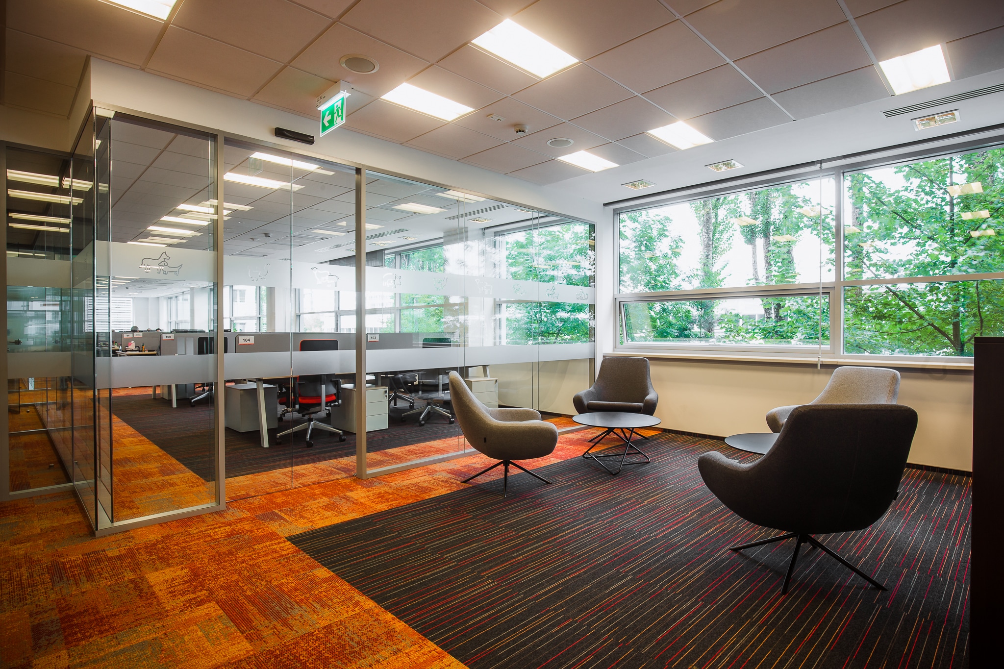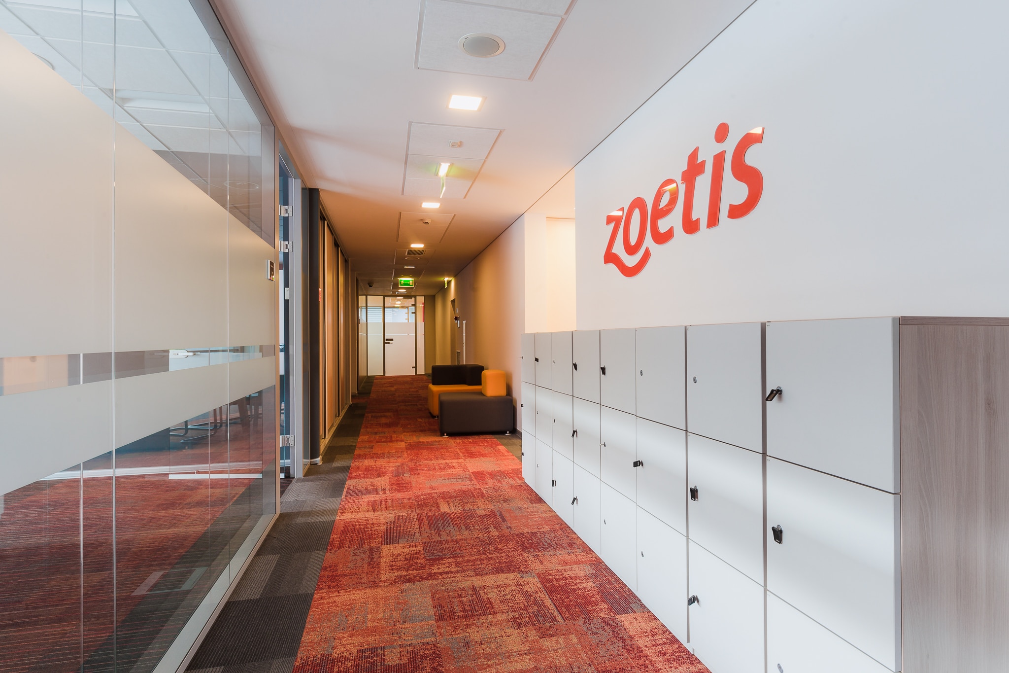 The new office space for the company ZOETIS, dealing with the protection of animal health, is a continuation of the style of the existing office, but with new accents refreshing the existing arrangement. So there are graphic accents of animals and colors, referring to the current style of the brand and identifying the company’s headquarters. Stylistic treatments in social areas also correspond with the whole office. The whole new surface has been designed in a new technology that allows smooth and intuitive control of lighting, while giving an economical and ecological effect.